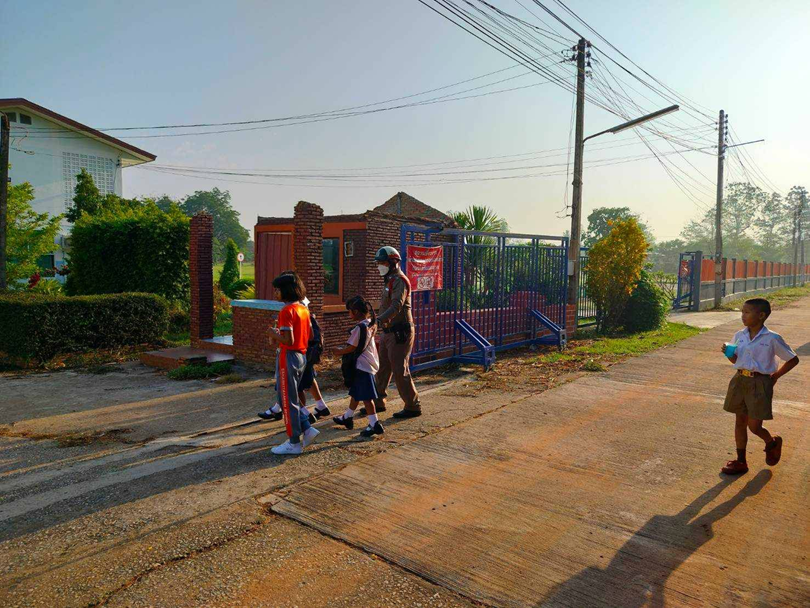 ด.ต.วิทยา สาดแก้ว ผบ.หมู่ (ป.) สภ.ทรงธรรม อำนวยความสะดวกการจราจรบริเวณ หน้า รร.สหวิทยา