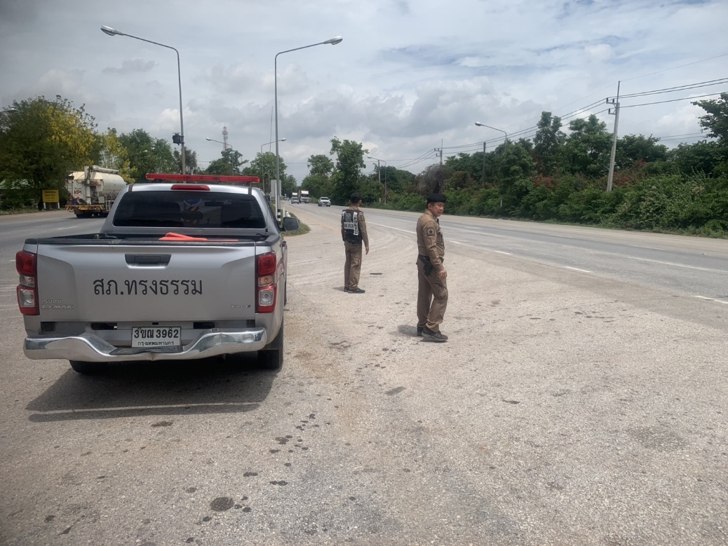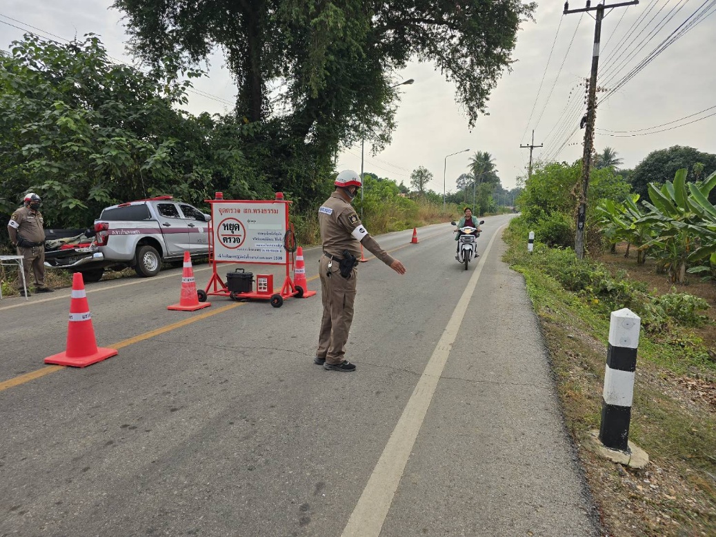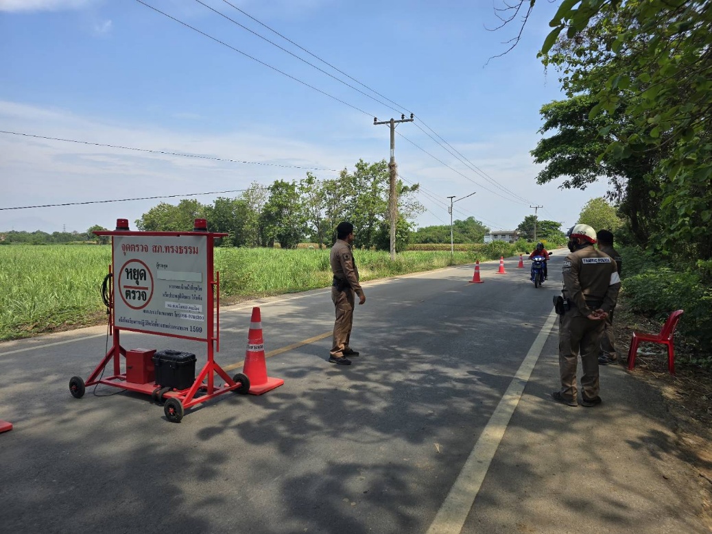 ร.ต.อ.กีรพจน์  จารุฑีฆัมพร รอง สวป.สภ.ทรงธรรม รอง สวป.สภ.ทรงธรรม พร้อมเจ้าหน้าชุดจราจร ตั้งจุดตรวจจุดสกัด จุดบังคับใช้กฎหมาย