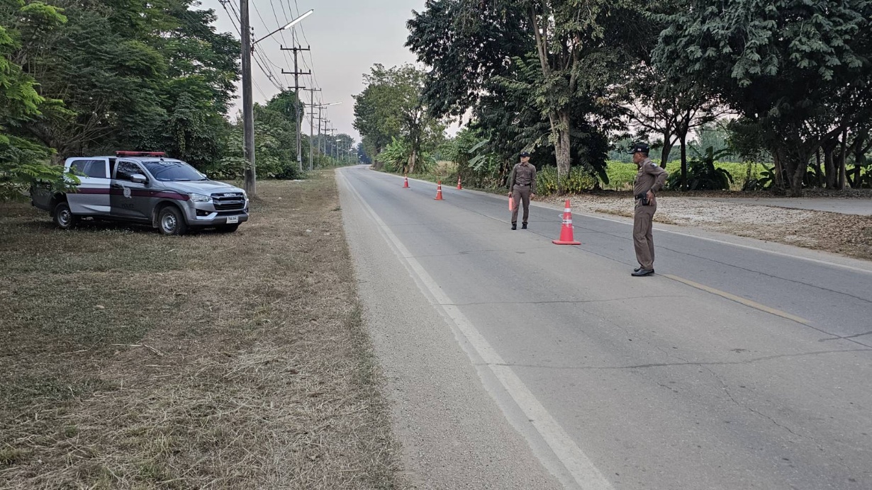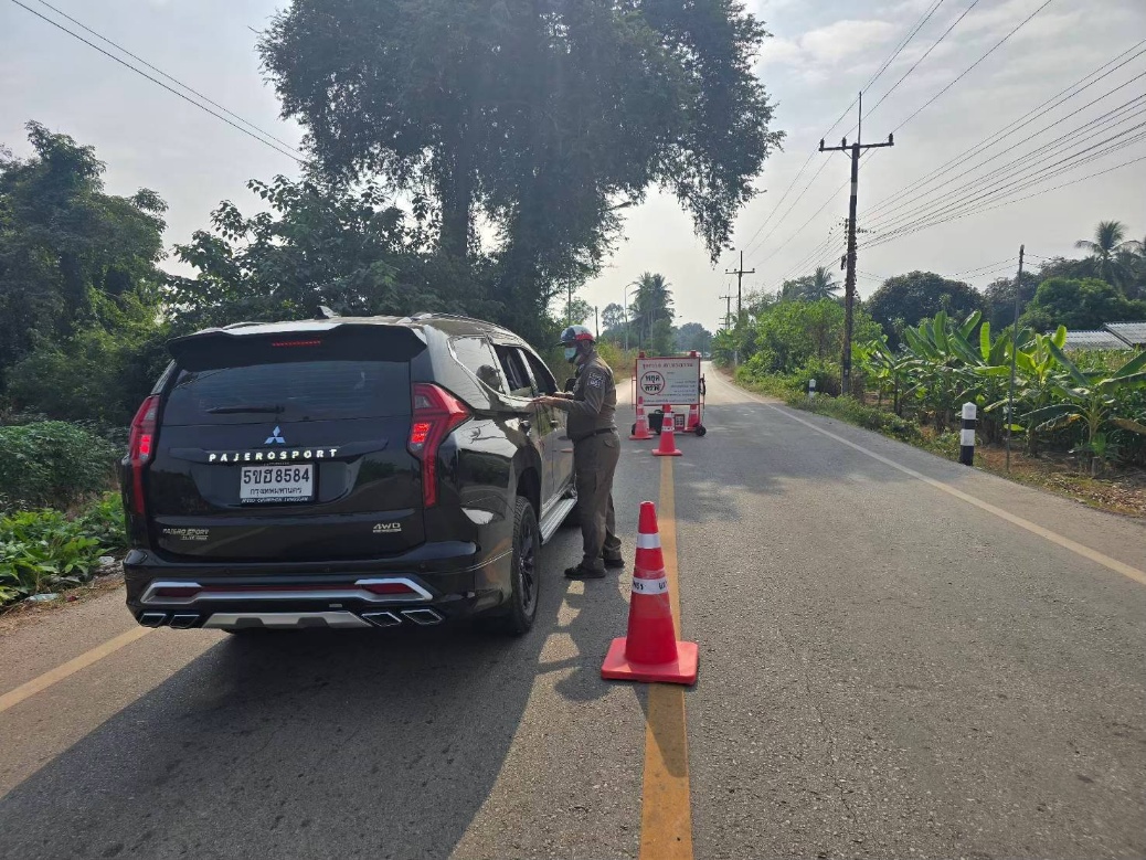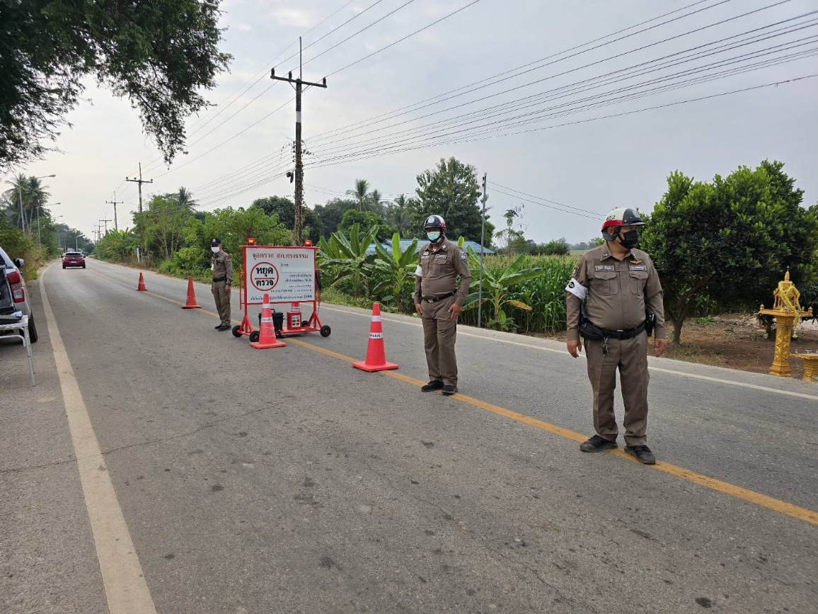 ร.ต.อ.พิเชษฐ ซ่อนกลิ่น รอง สวป.สภ.ทรงธรรม พร้อมเจ้าหน้าชุดจราจร ตั้งจุดตรวจจุดสกัด จุดบังคับใช้กฎหมาย
